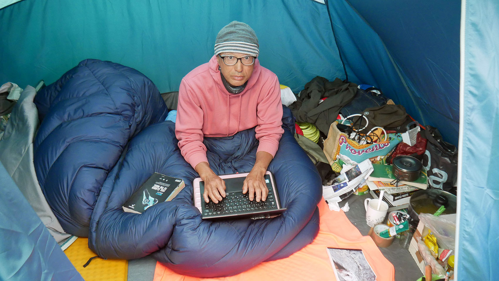 隣の車の中で、寝ているおじさんがいるので、車の開け閉めに気を遣う。