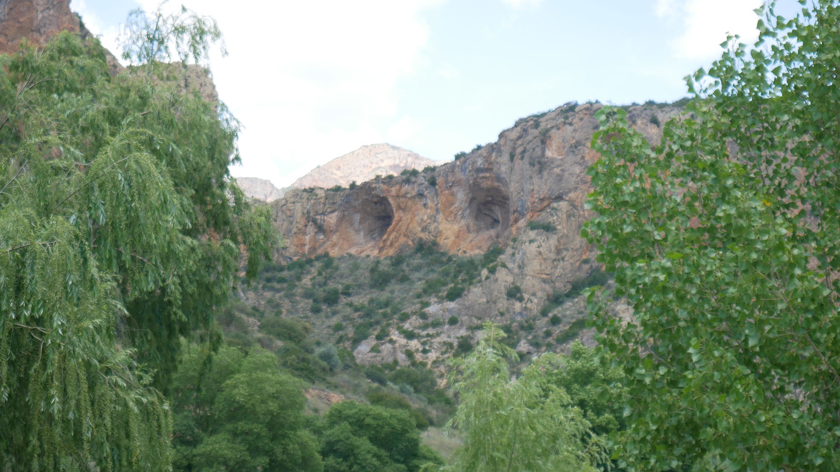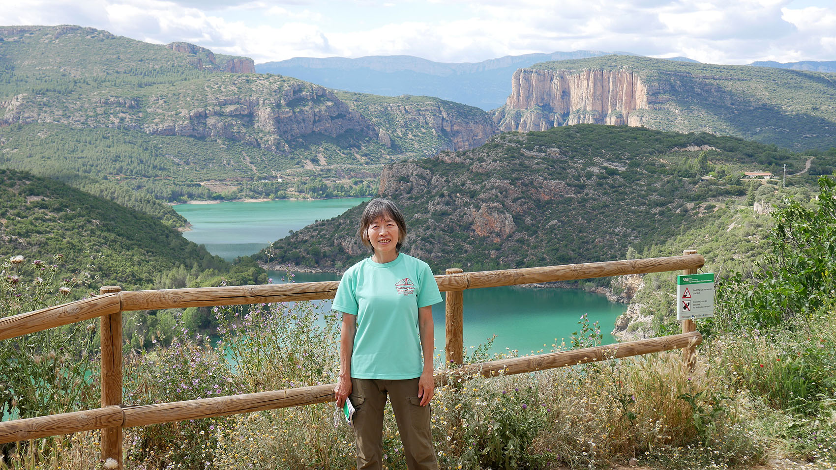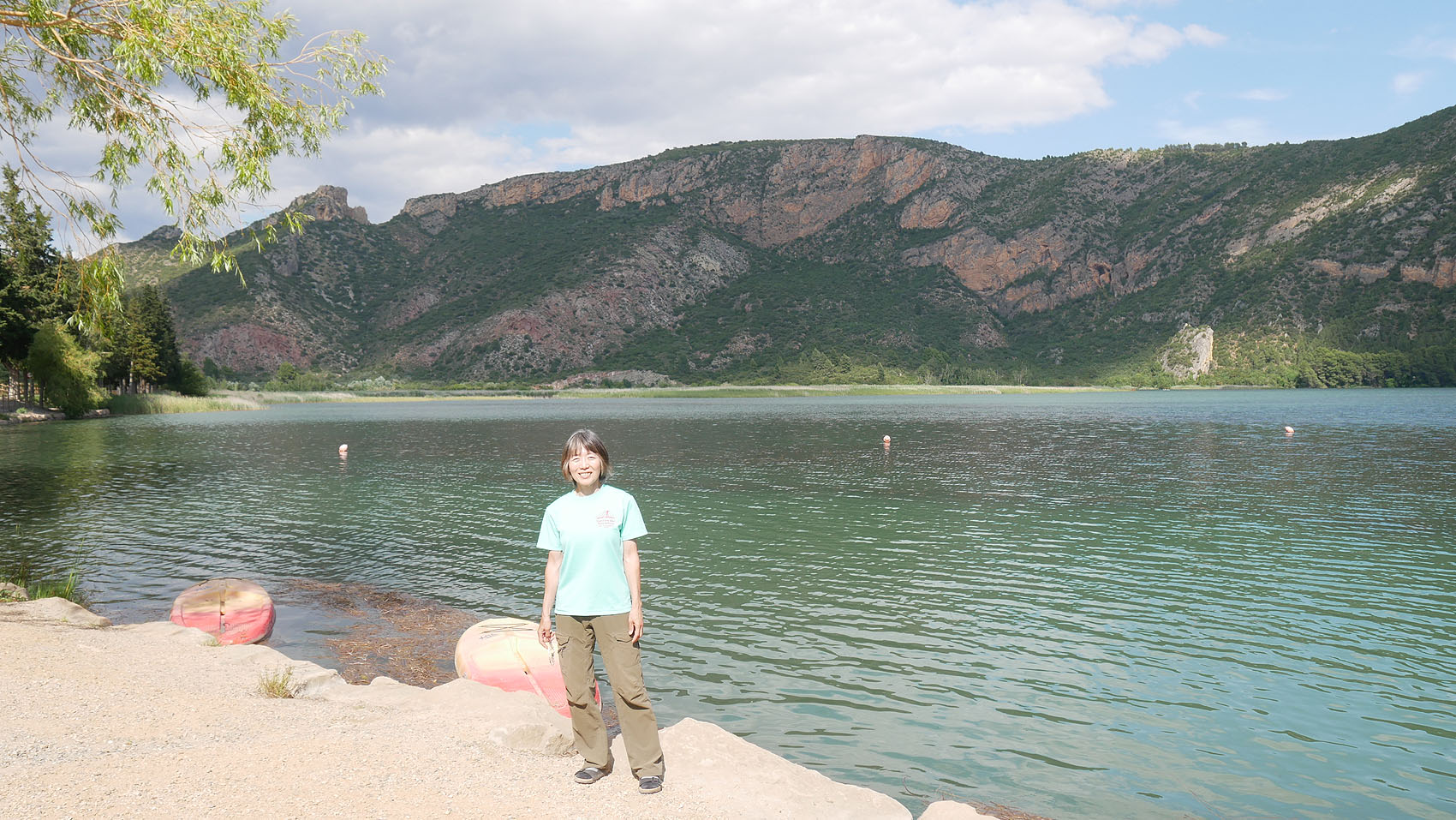 水が緑色、山も緑色の岩肌で、鉱物の色だろうか?