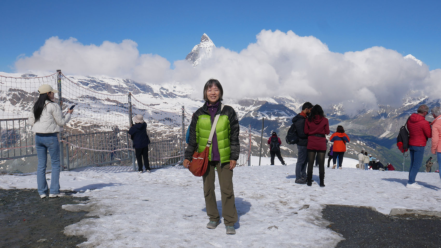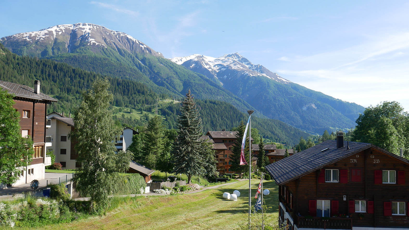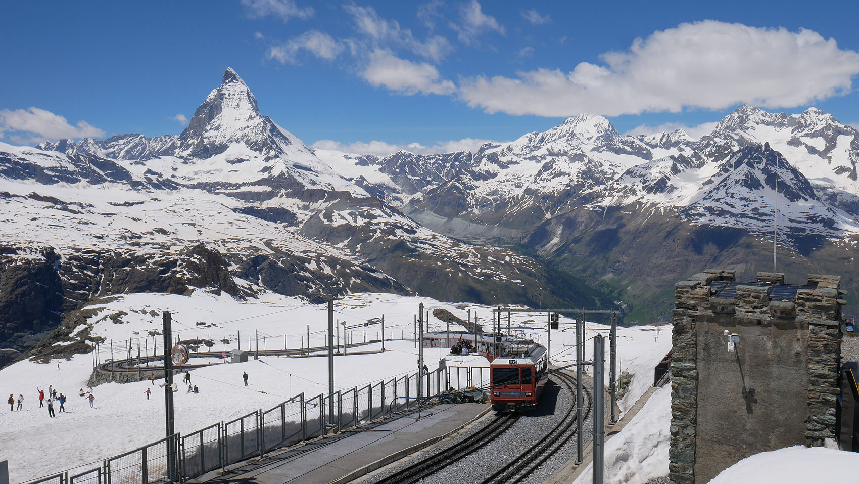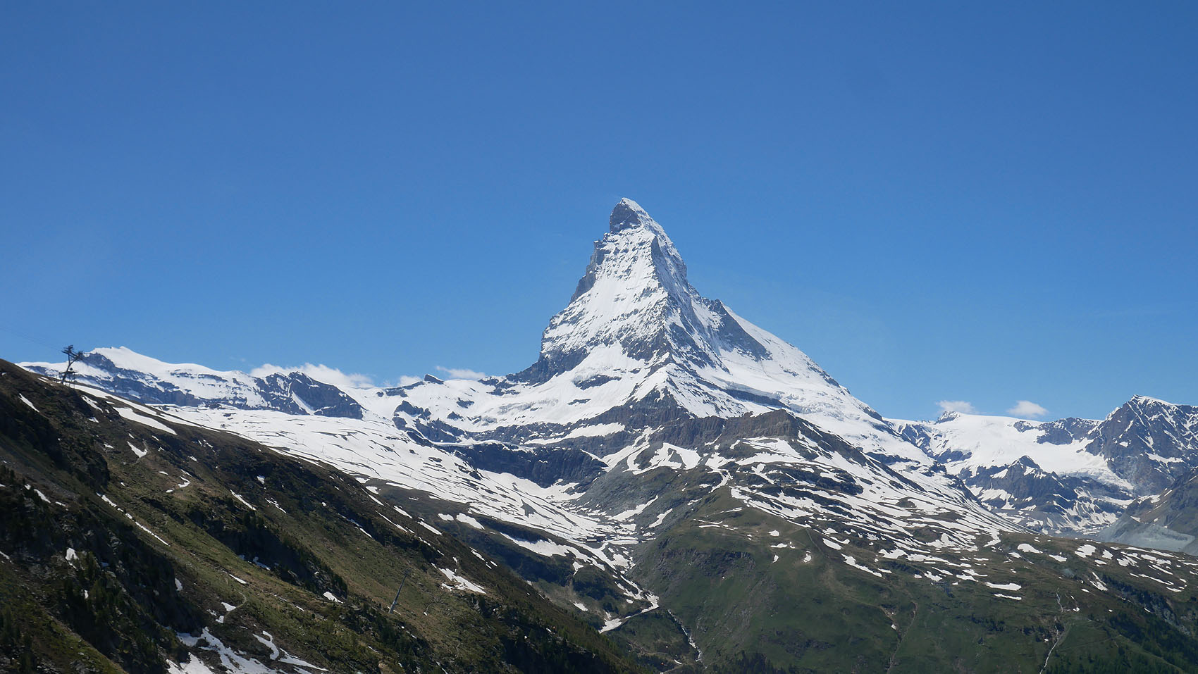 アイガー(Eiger)、メイヒ(Monch)、ユングフラウ(Jungfrau)と、ベルナーオーバーラント三山の中腹が見える。