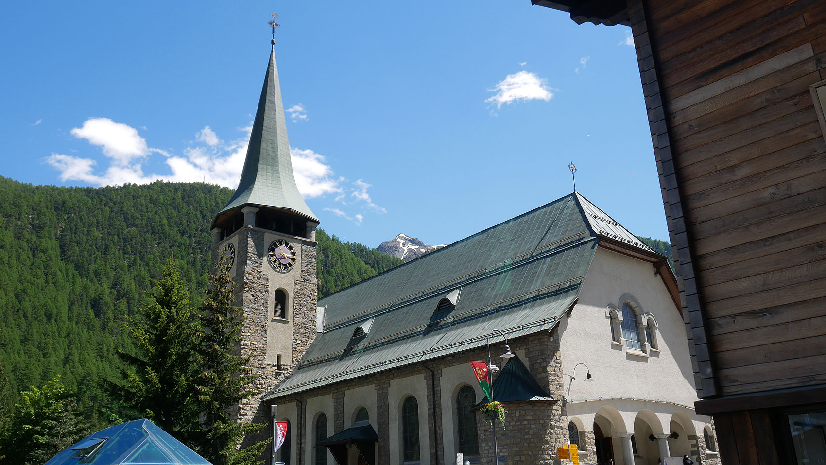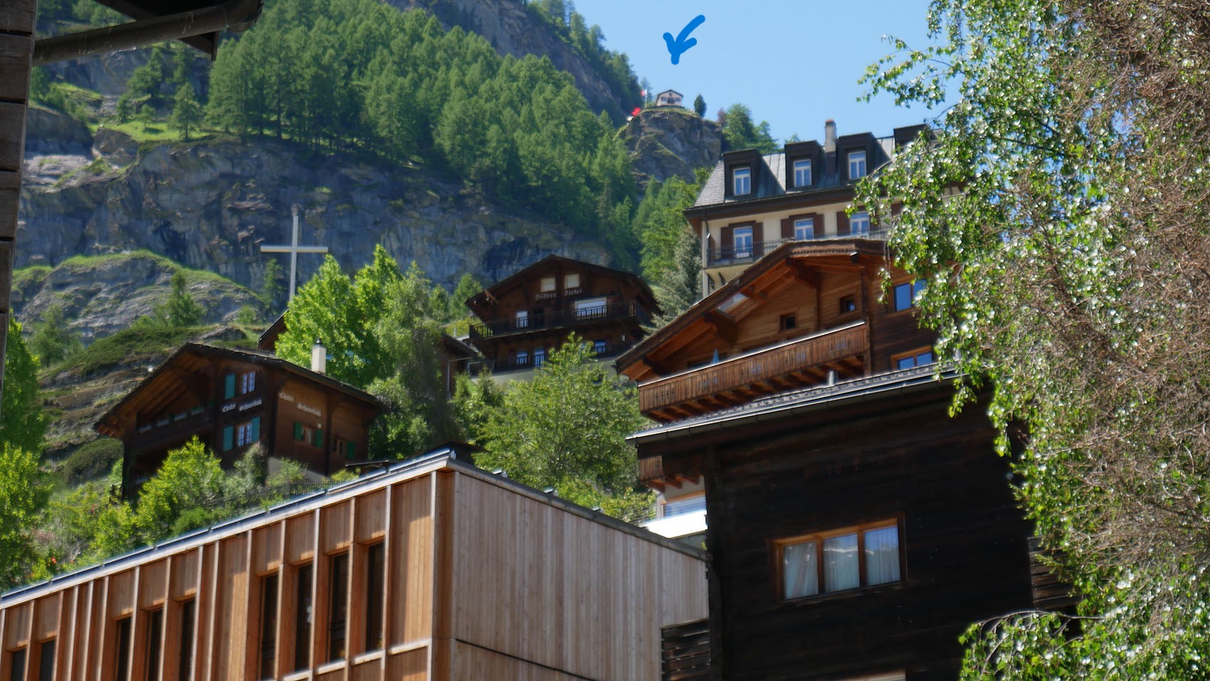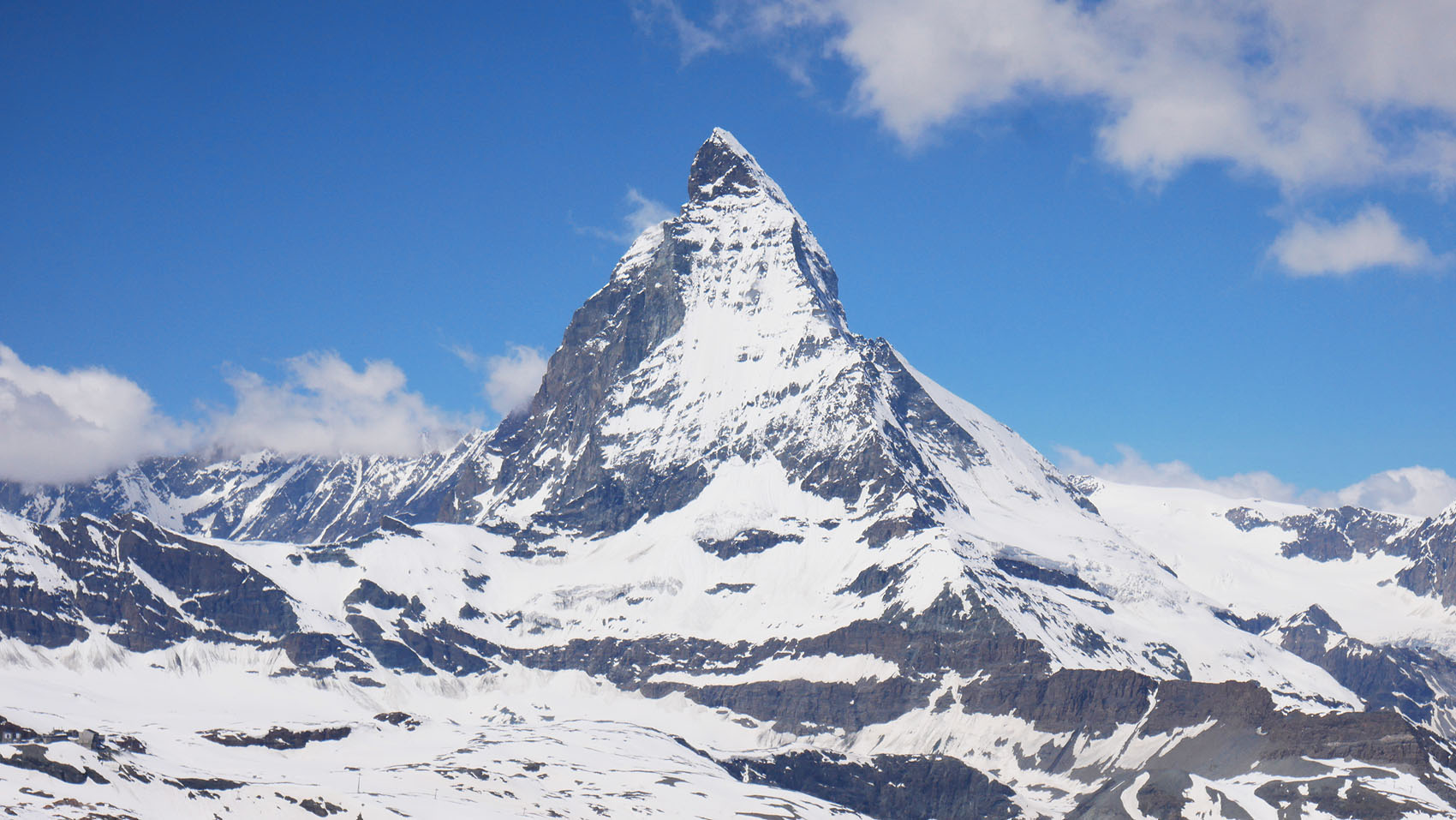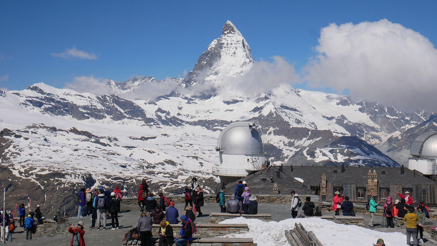 アイガー(Eiger)、メイヒ(Monch)、ユングフラウ(Jungfrau)と、ベルナーオーバーラント三山の中腹が見える。