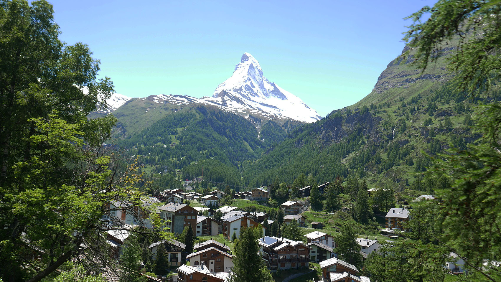 ▼Interlakenから眺める、アイガー(Eiger)、メイヒ(Monch)、ユングフラウ(Jungfrau)