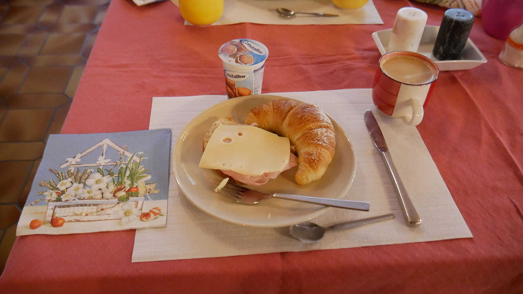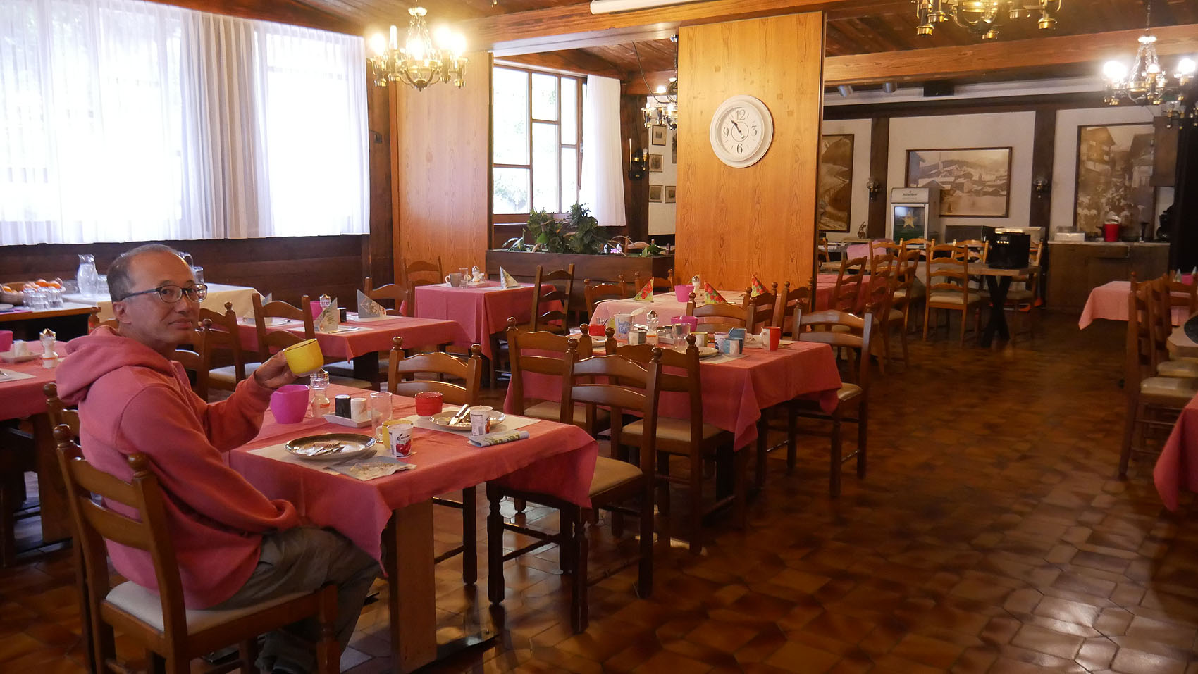 昔、シャモニーの安ホテル(今はなくなってしまったみたい)で泊まった時も、朝食付きで、その時は、パン、ハム、チーズ、バター等が載った、プレート(お盆)を渡されたんだったかな?