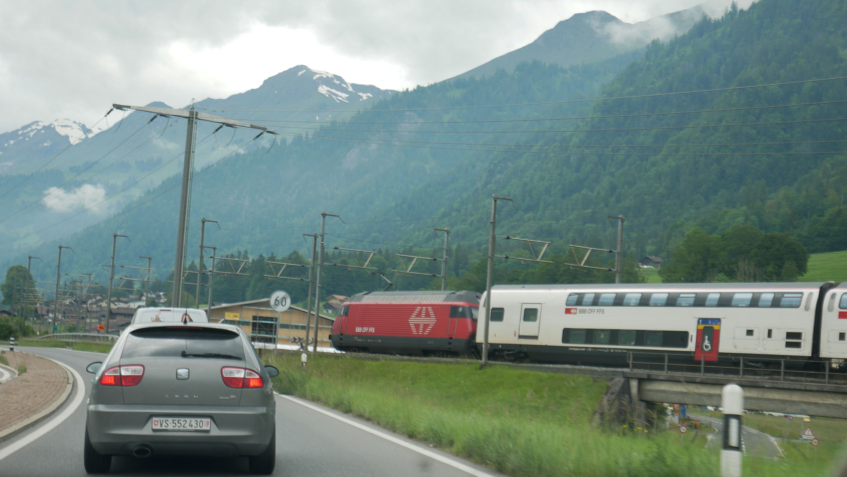 20時40分頃、Interlarkenから右周りの1号線と合流。くもり