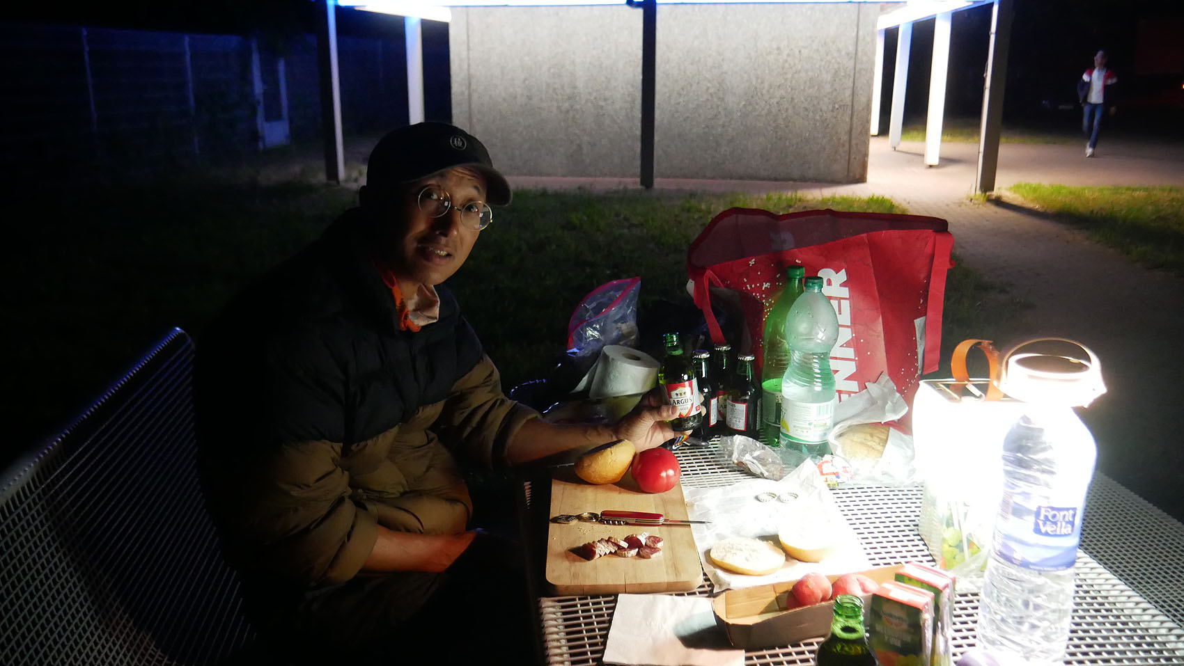 本当は、明るいSAで食事と思ったけど、ドイツのSAはトイレが有料だったことを思いだしPKにした。