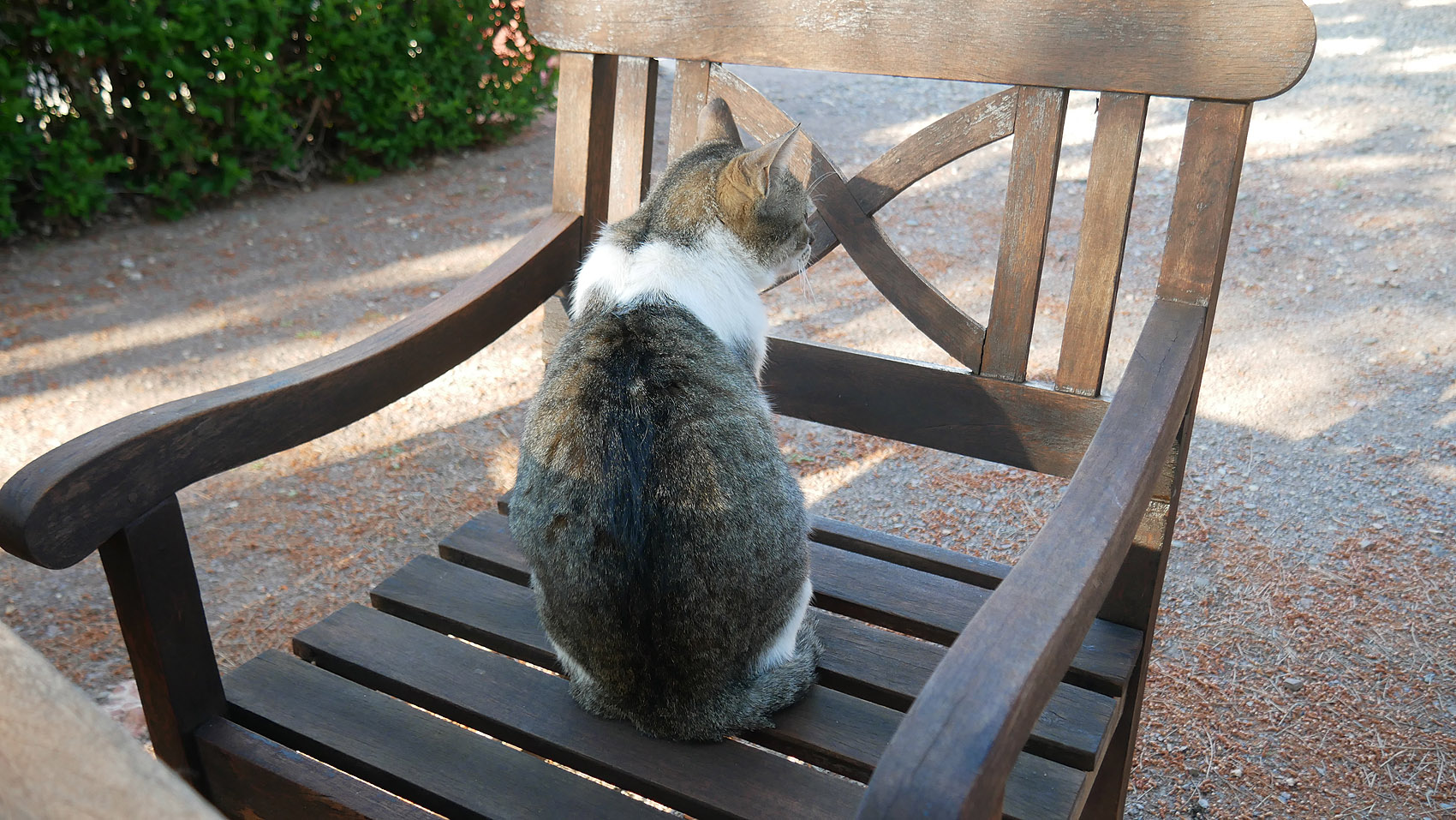 ごみを捨てながら、そういえば最近ネコを見ていないなと思いながら、レセプション前に行くと、ネコがいる。