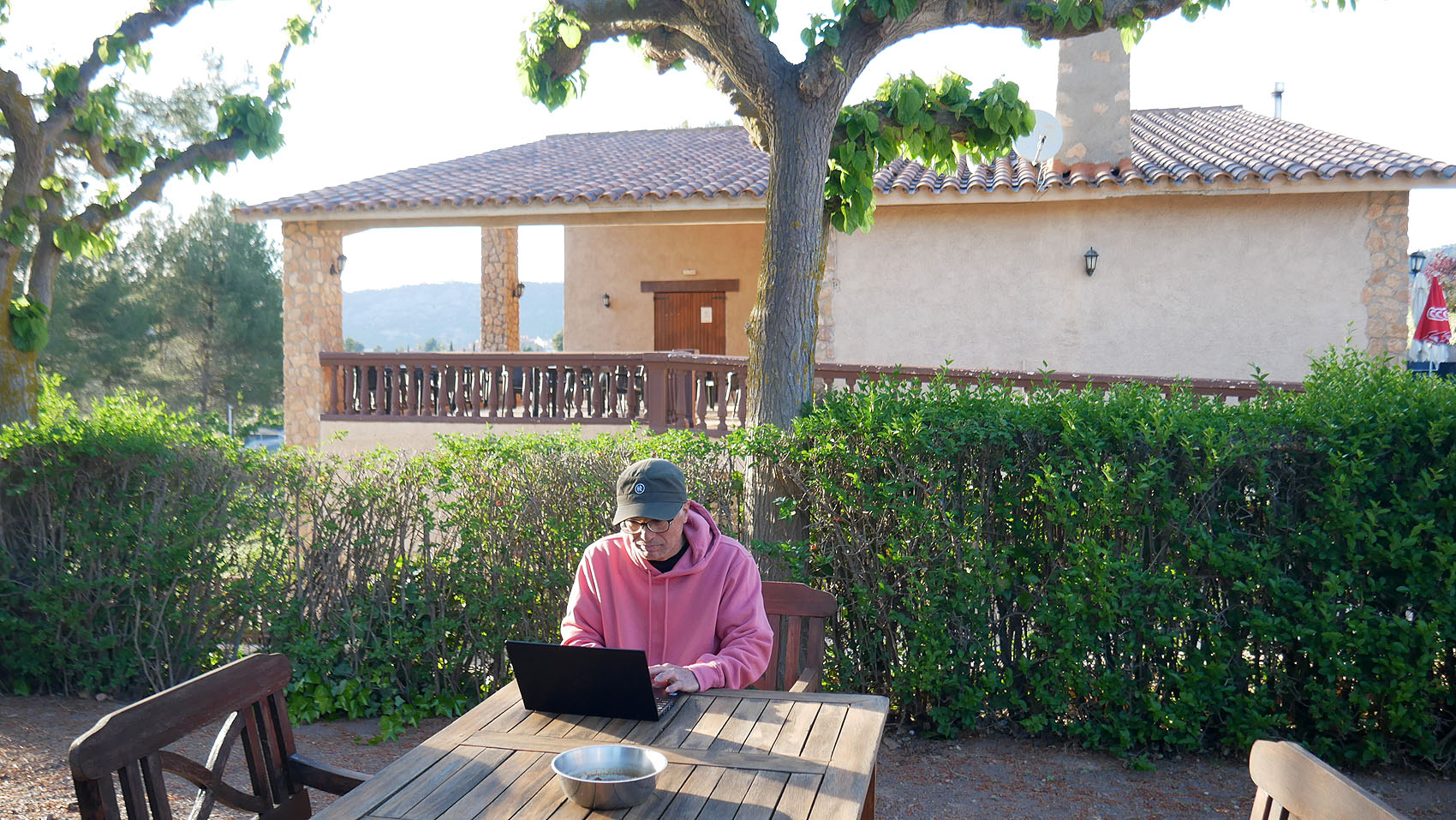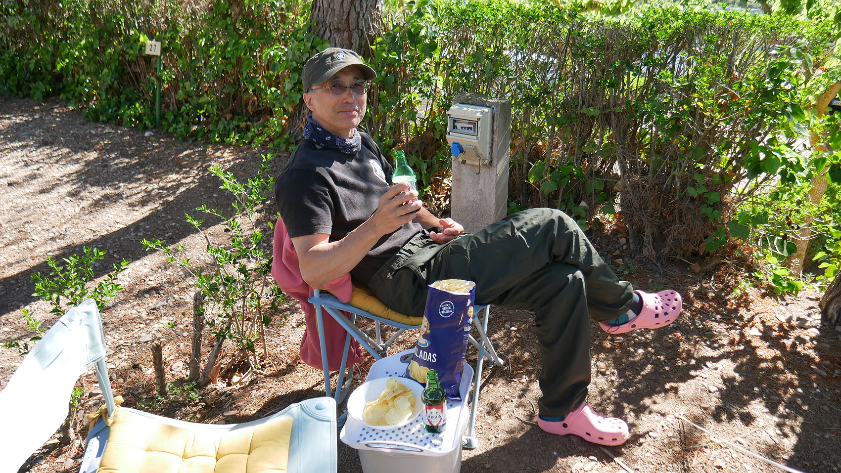 お隣のドイツ人ご夫妻も、外でくつろいでいる。