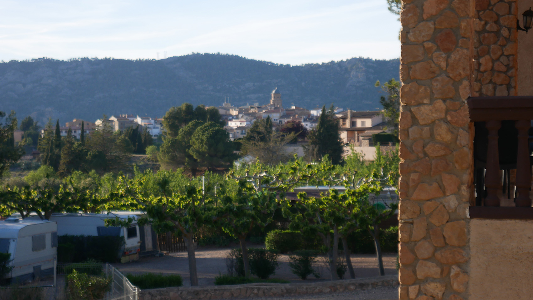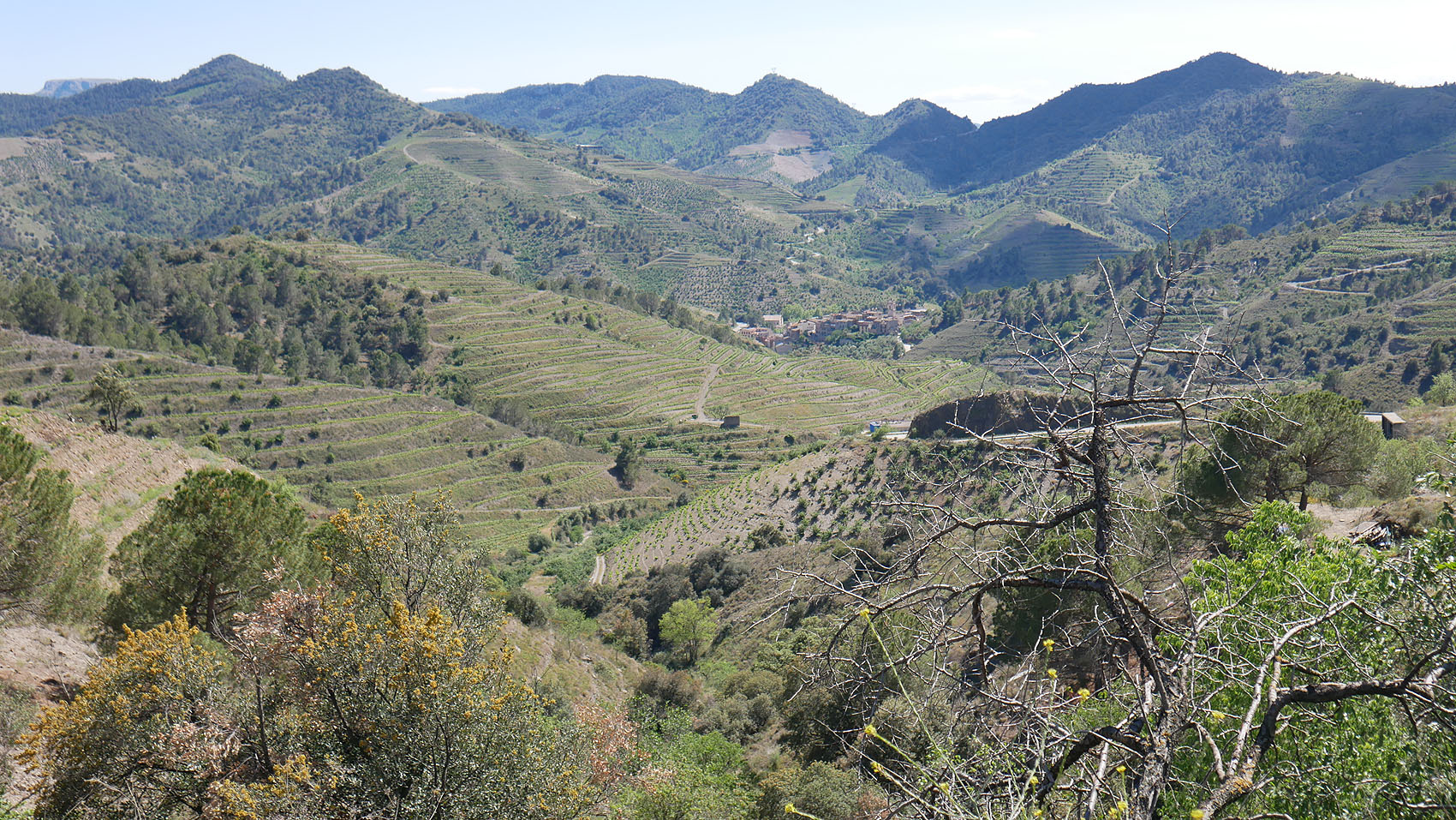 Porreraの手前で右折。その先の山の斜面のブドウ畑が見事。