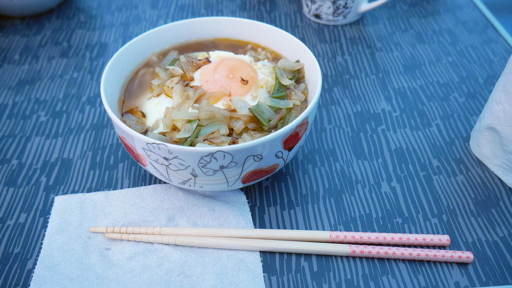 さきほど、お隣のドイツ人夫妻が出かけて行ったので、安心してすすれる。