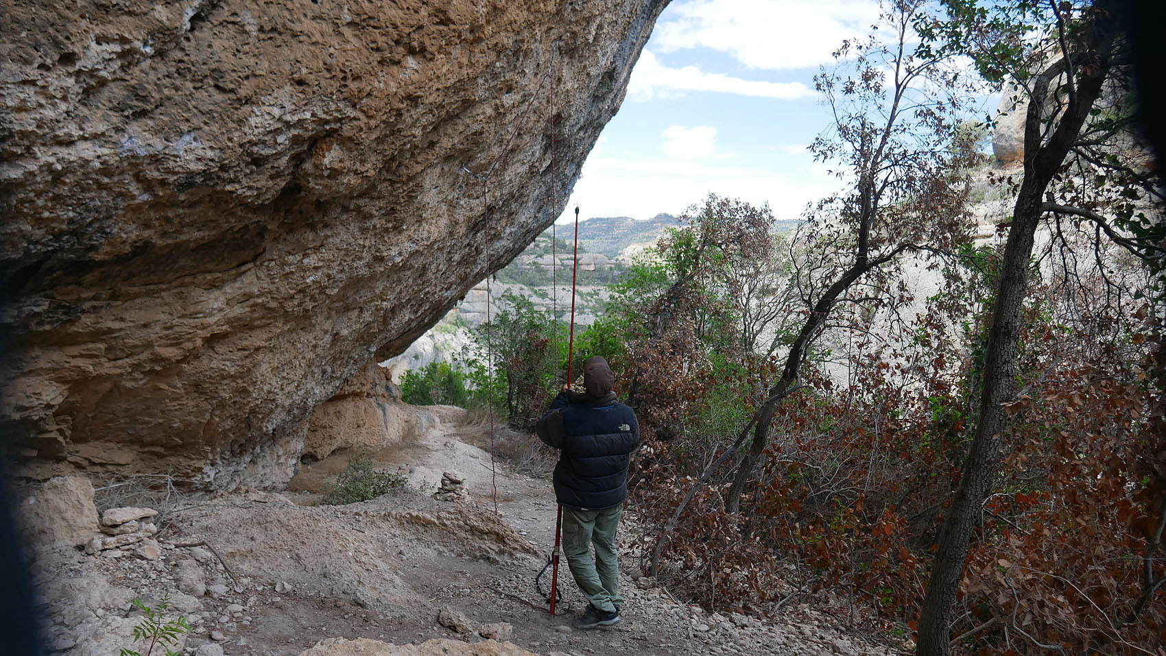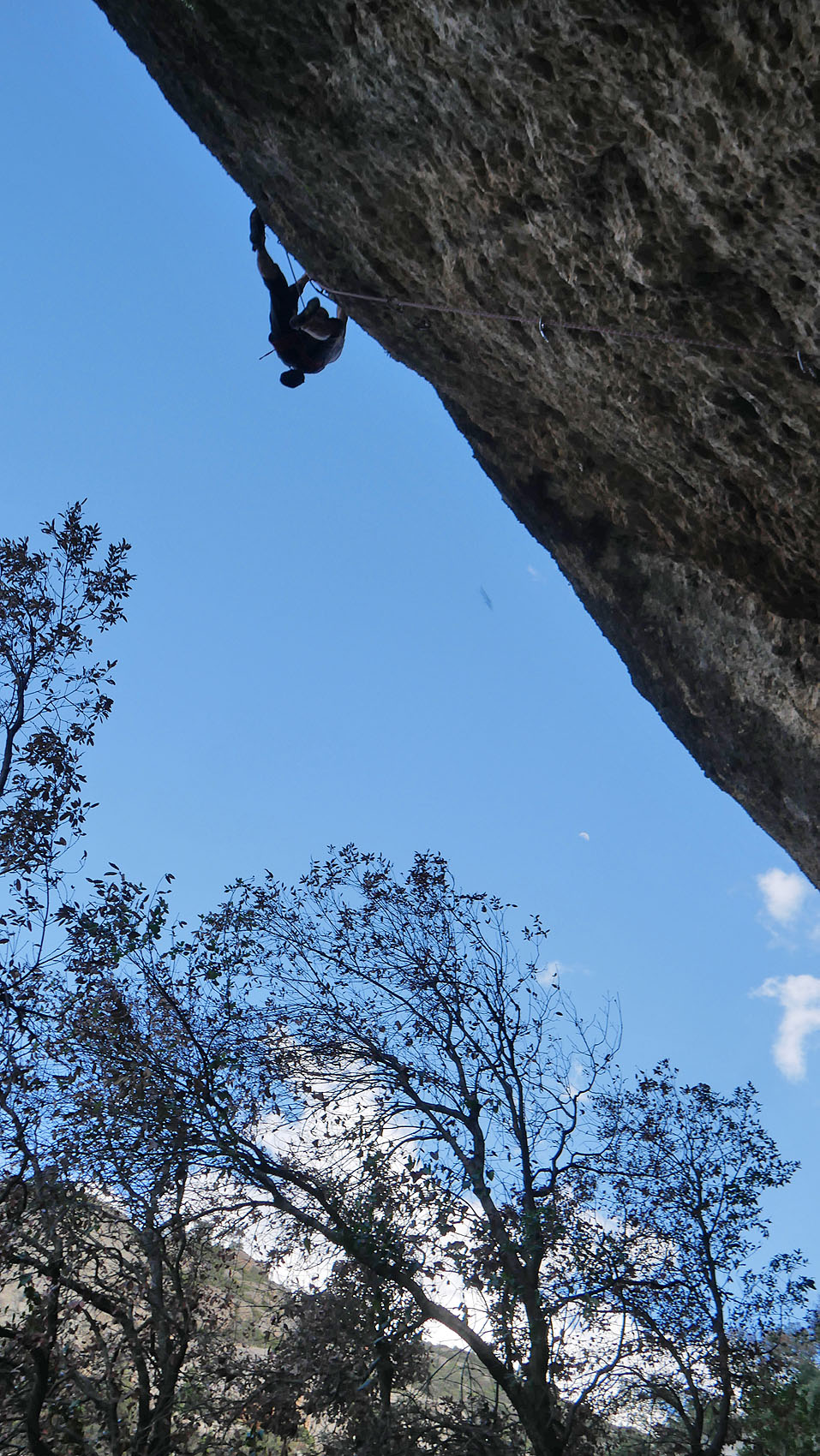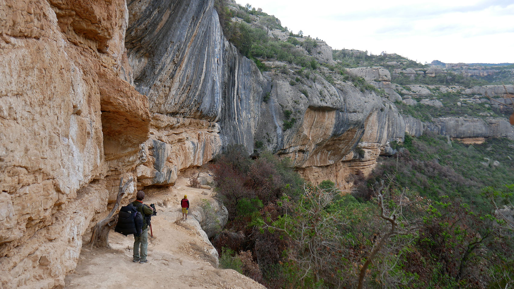 双眼鏡を覗くと、Raco de les Espadelles エリアを登っている人が見える。
