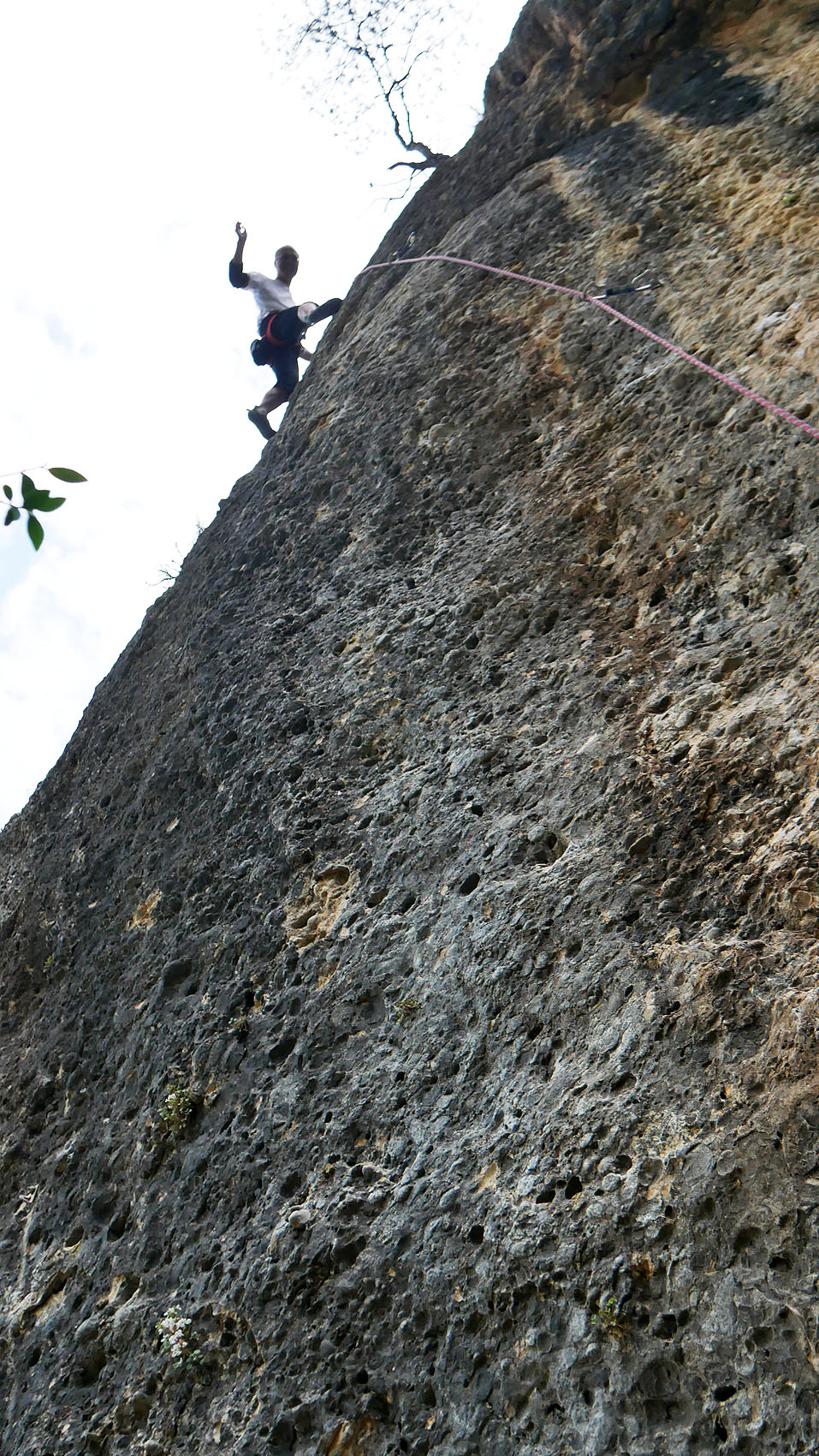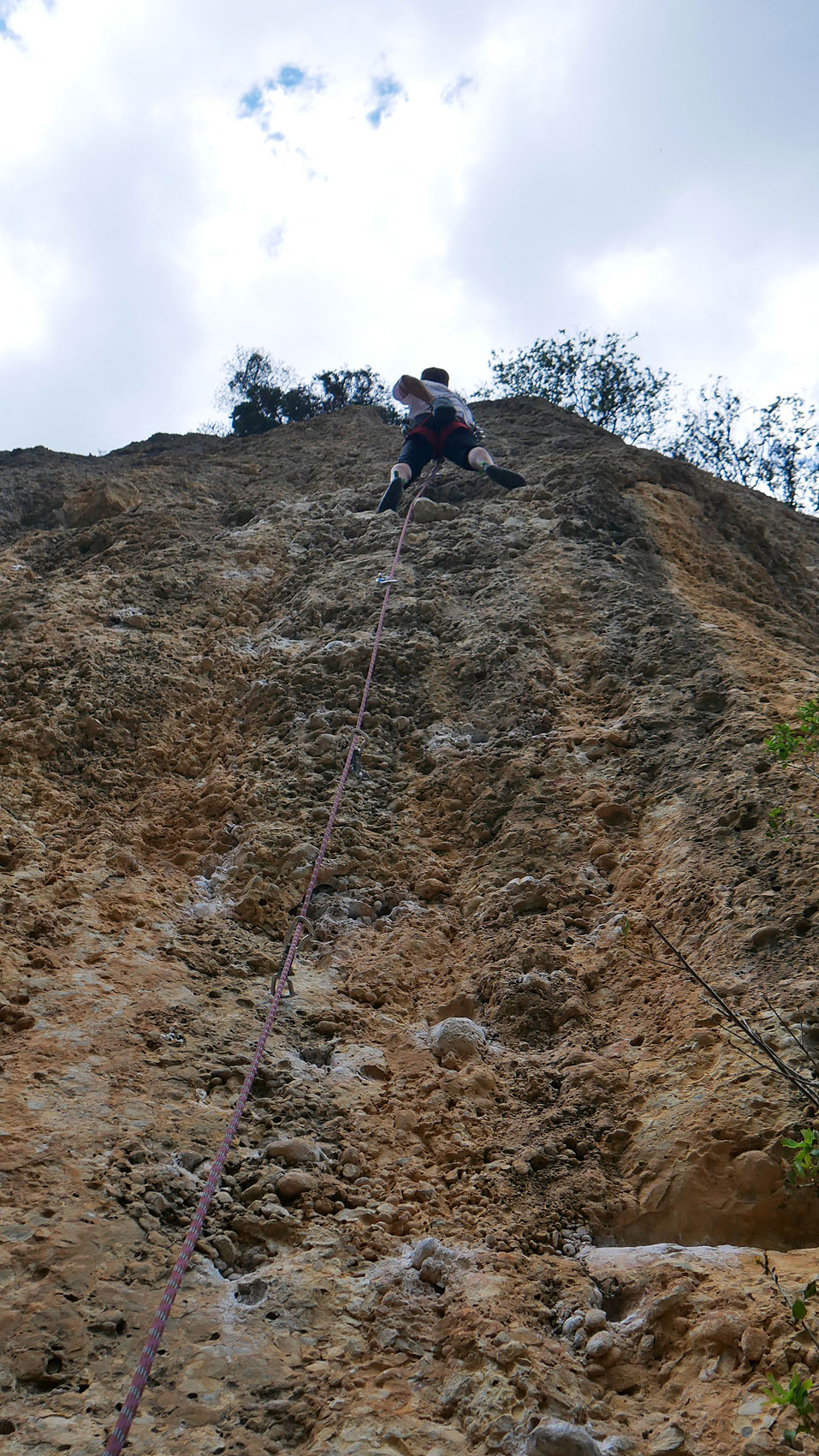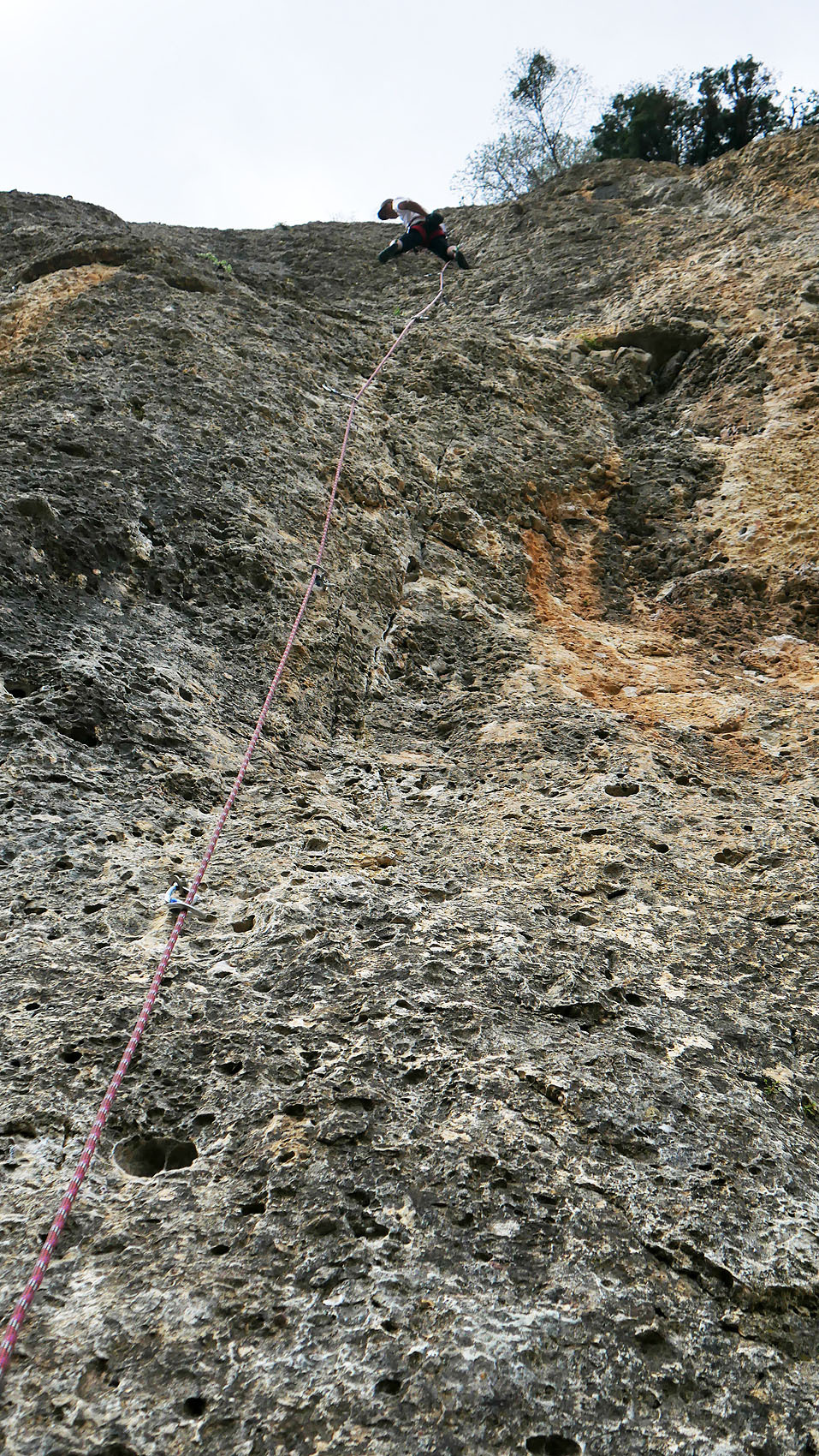 12時20分頃、まだ日が当たっているうちに、ダンナが Krilin 6b+ を登る。