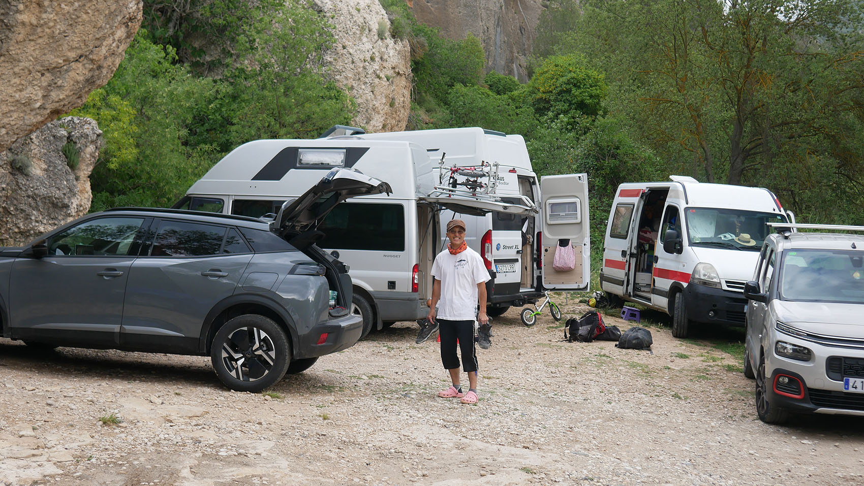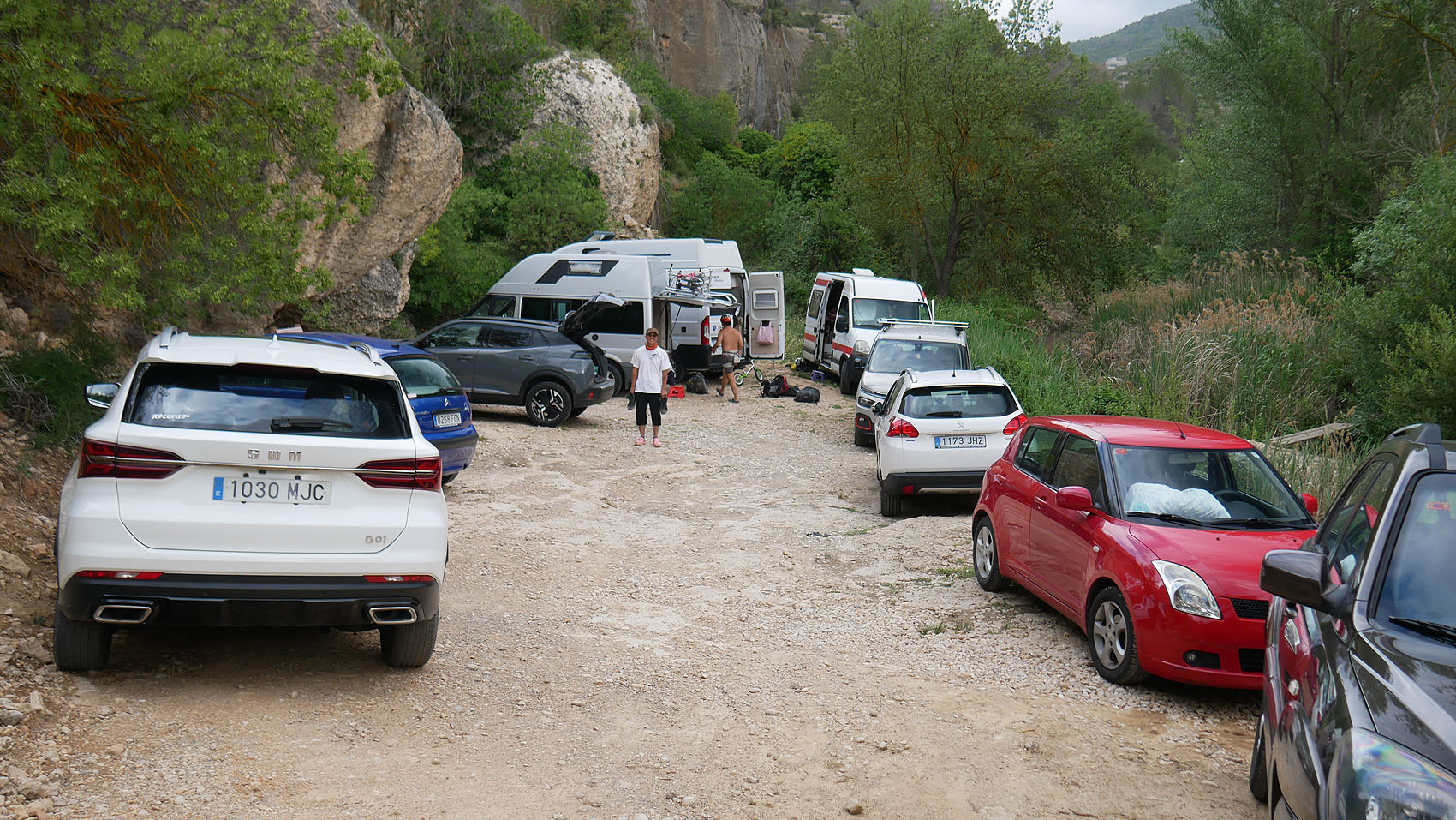 岩場から見下ろすと、我々が停めた次の駐車場に車がいっぱい見える。