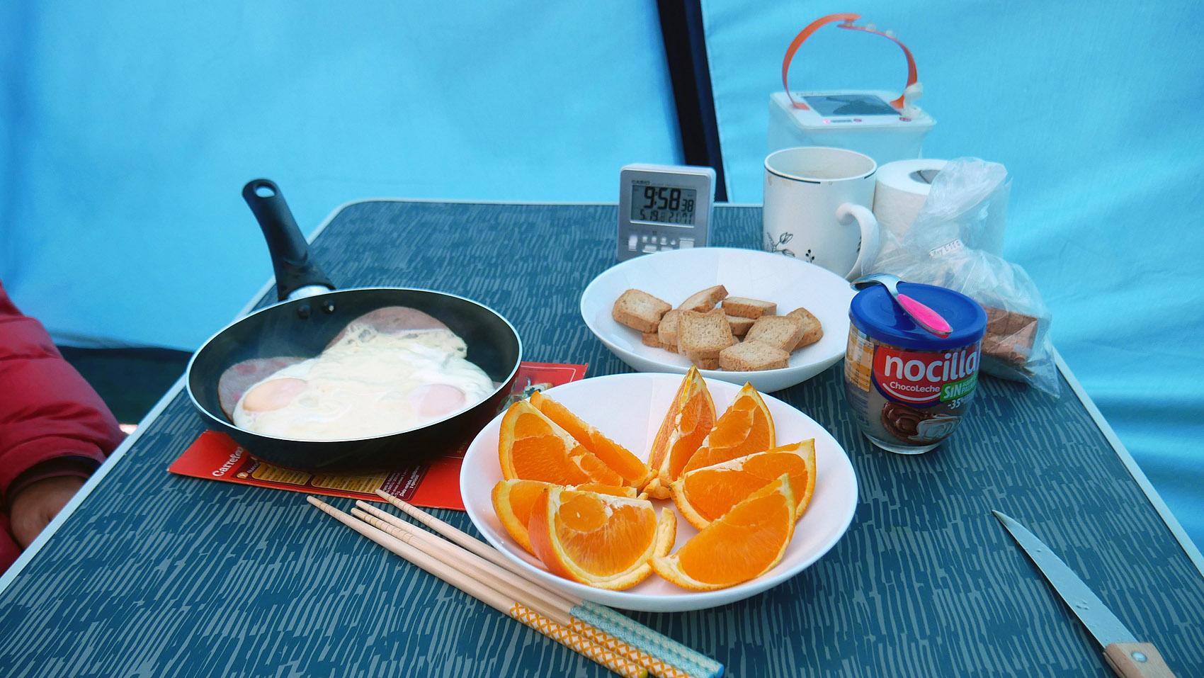 ダンナも起きるから開けといてというので、テントの入口を開放。