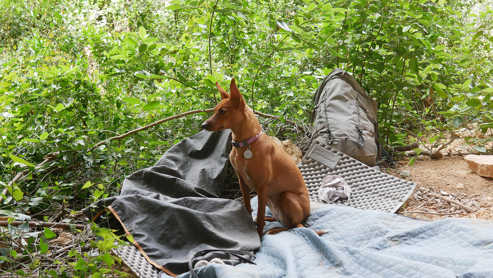 ダンナの目的のルートのとりつきには、荷物が広がっている。