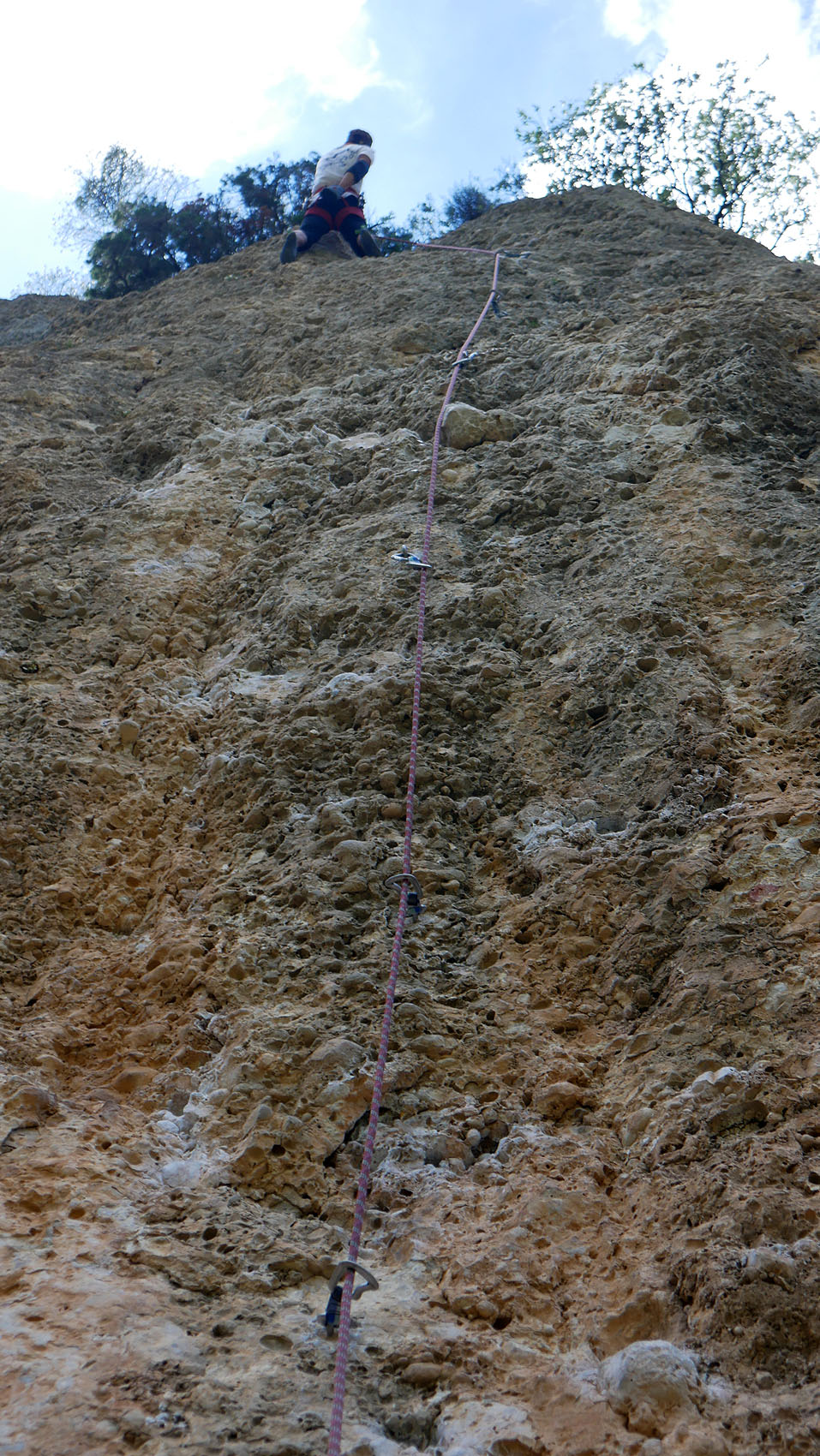 私が登り始めた後、カップルの彼女の方が、後から7aをトップロープで登り始めた。