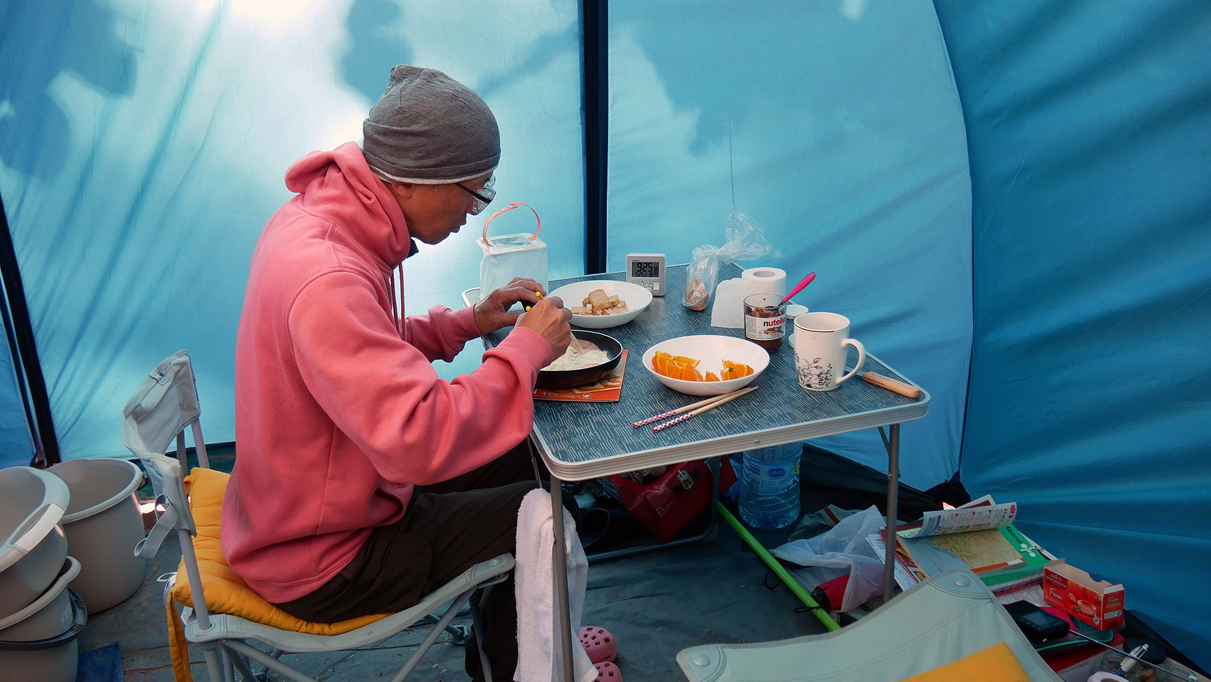 7時過ぎ、テントに戻って、タブレットで日記書き。