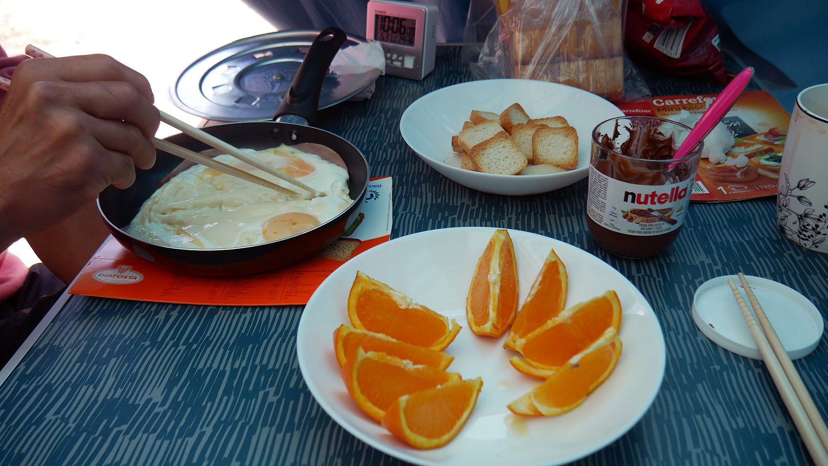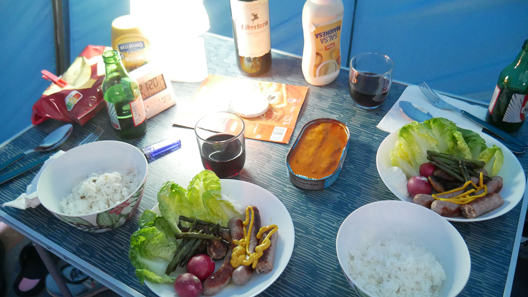 私は、鍋皿洗い後、歯を磨いて、テントに戻る。