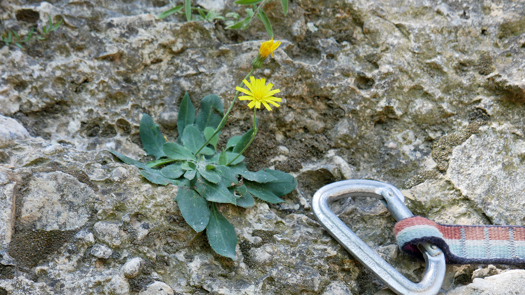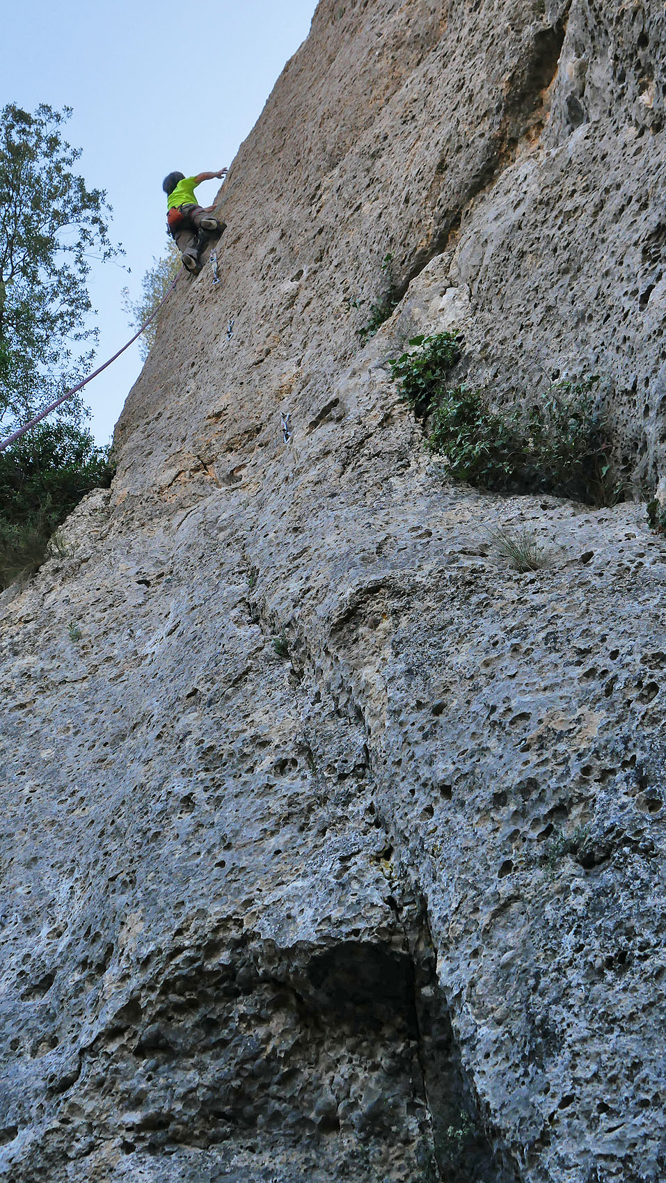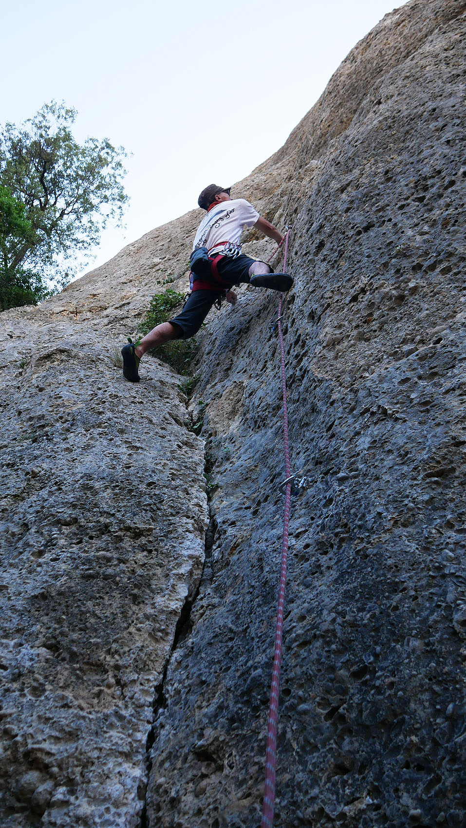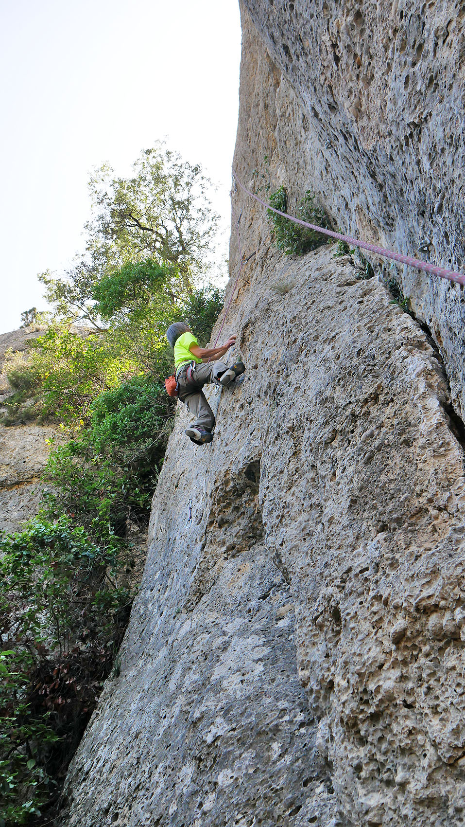 Ca la Marta エリアの右側のルートを登っているクライマーがいる。