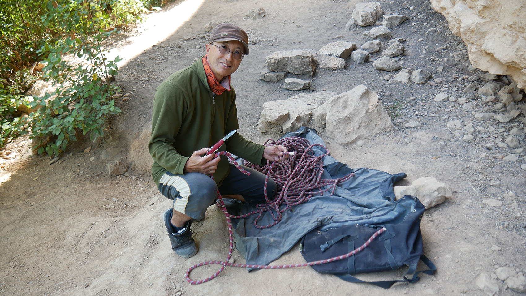 ダンナが、今回初めて、ロープの傷んだ末端を切った。