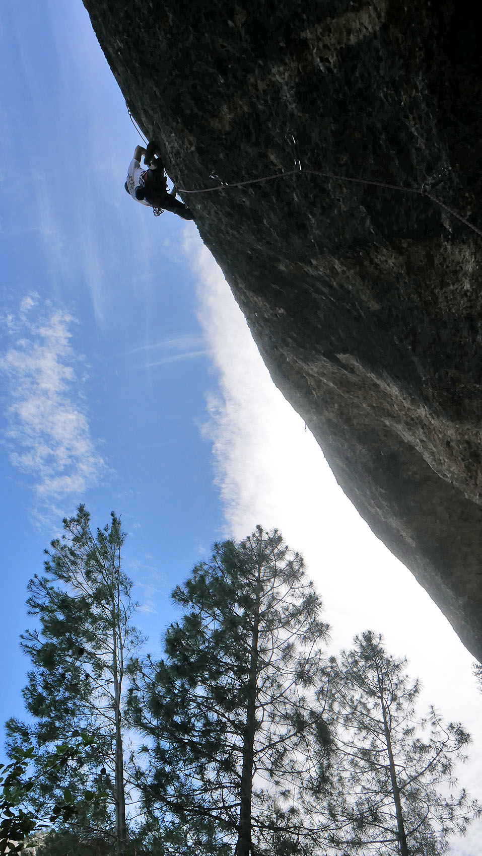 ダンナが、今回厳しいルートを登ってないから、あんまりハングドックでドッカンドッカン落ちたりしてないからなって。