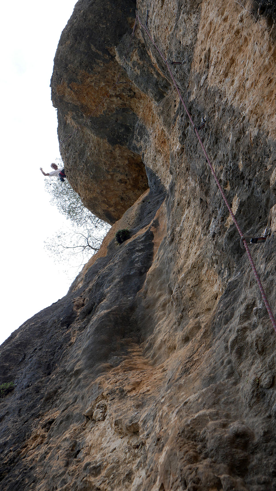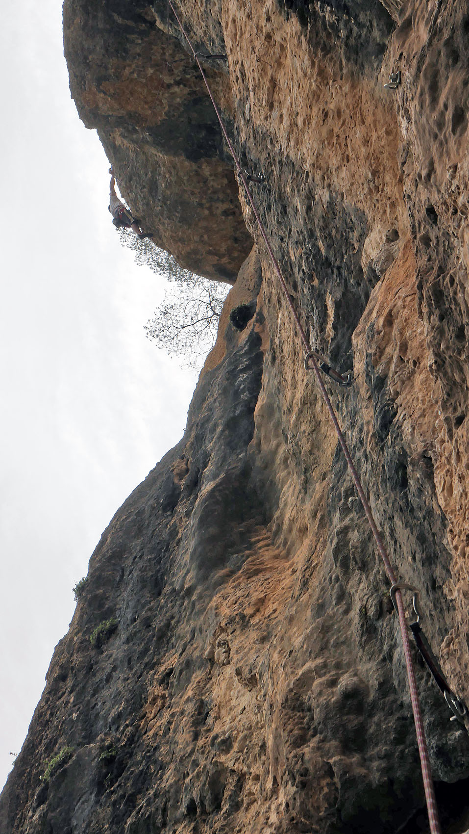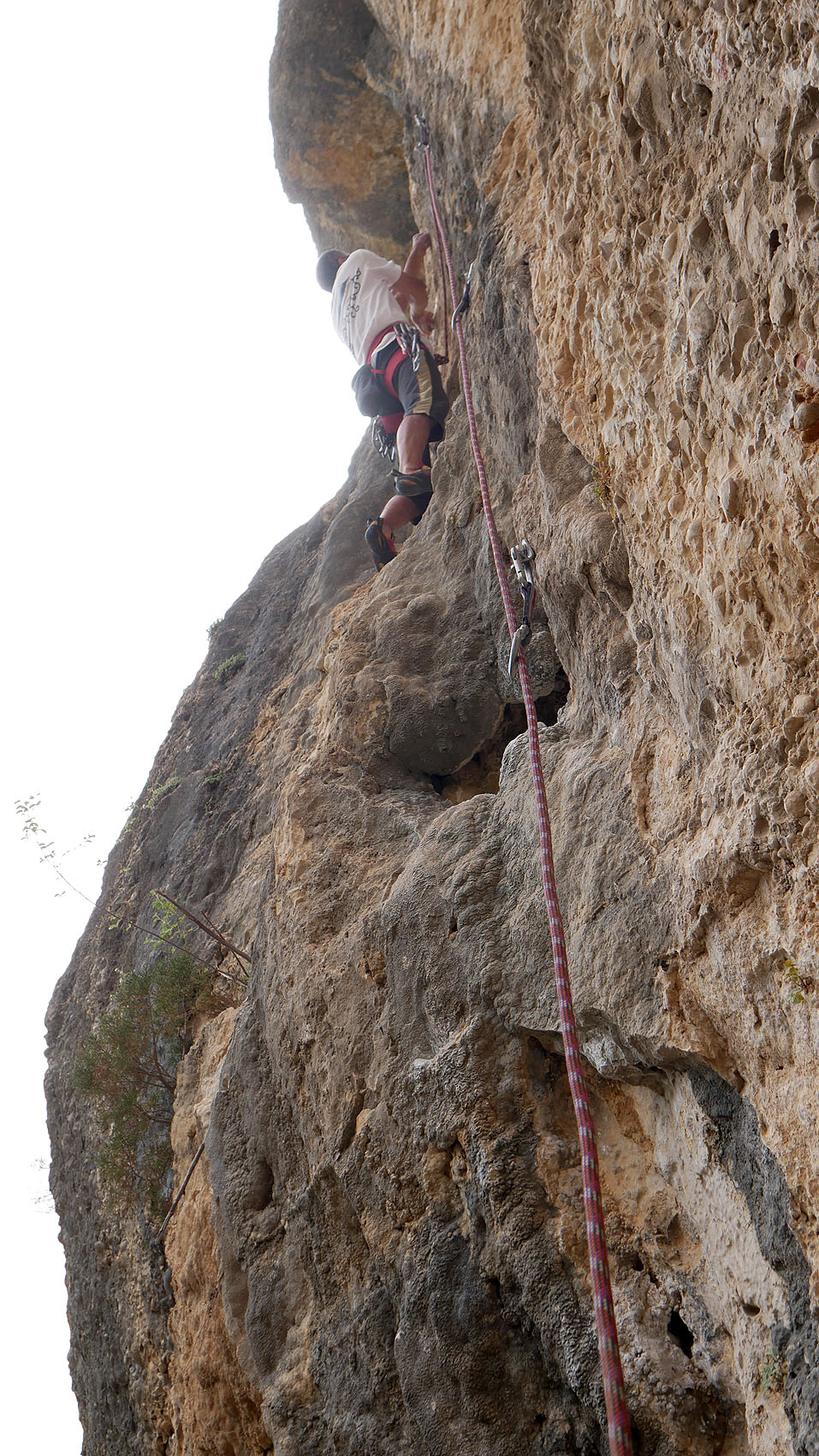 ▼El Fatolodromo 7c に、ヌンチャクをかけに行くダンナ