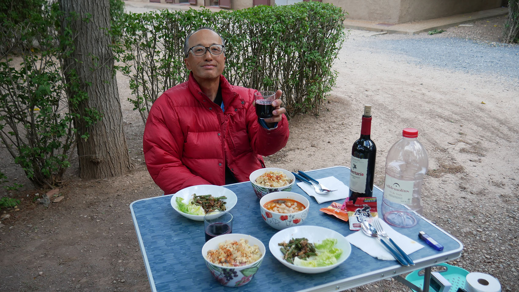 8時過ぎ、洗い場の前のキャラバンのご夫妻が、今日もチャリで出かけて行った。